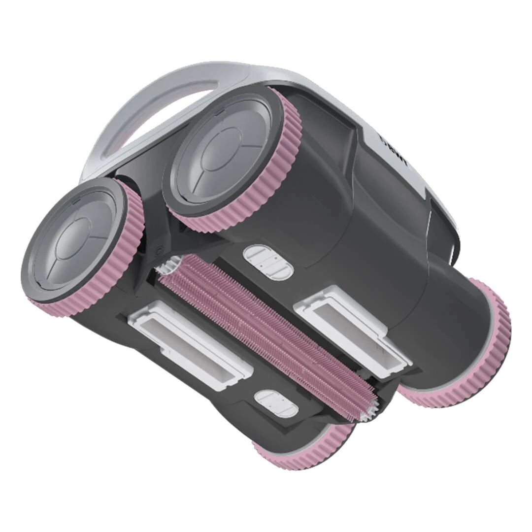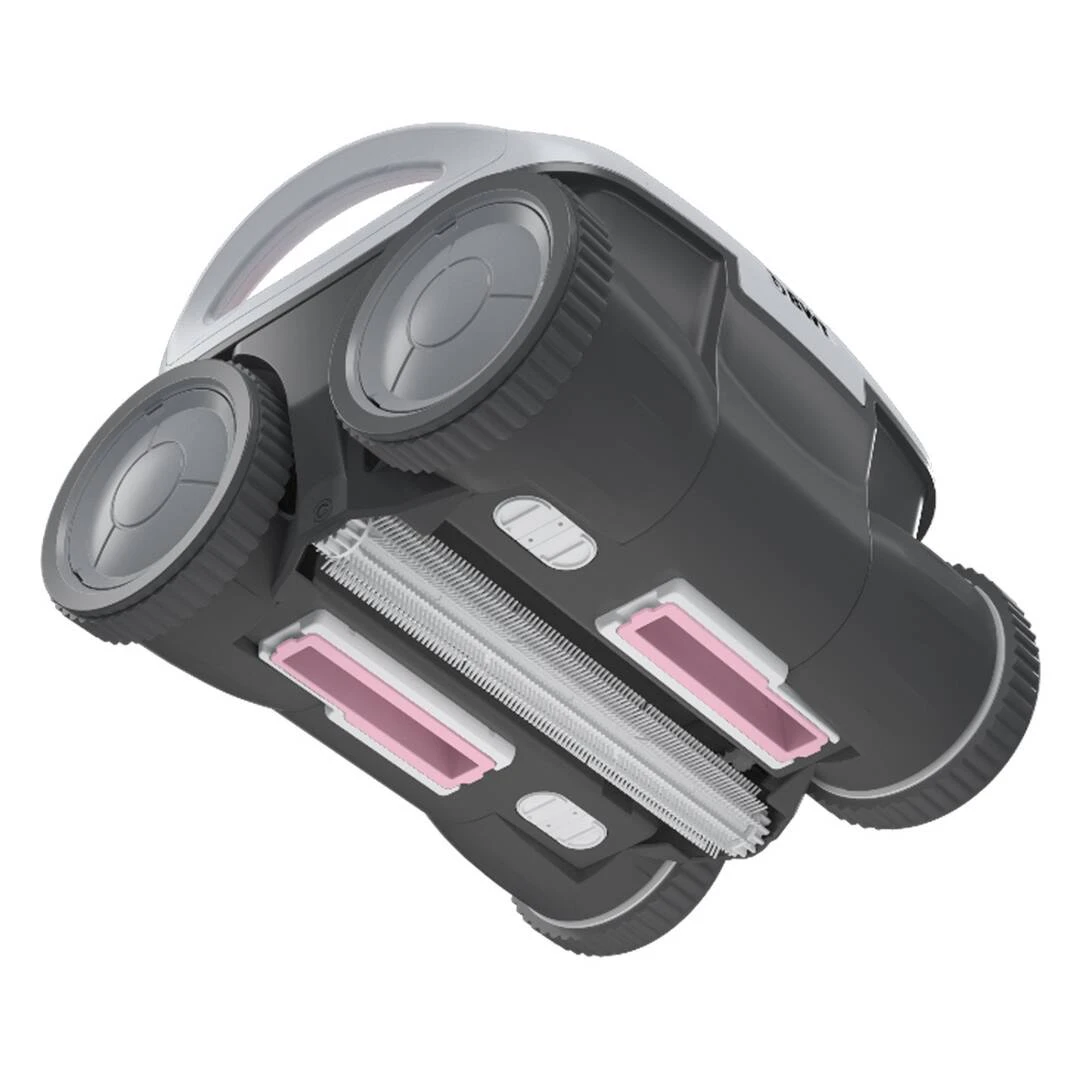 Grâce à ses 4 roues brosses de nettoyage, il déloge les saletés pour laisser la surface parfaitement propre. La brosse rotative supplémentaire assure un nettoyage impeccable du fond de la piscine.